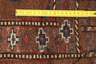 um 1900, gleichmäßige Musterung über erdfarbenem Fond, starke Alters- und Gebrauchsspuren, Maße 132 x 220 cm.
