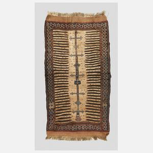 um 1920, Mittelfeld mit abstrahierendem Dekor, durchmusterte Bordüre, guter Sammlerzustand, Maße 190 x 95 cm.