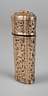 18./19. Jh. Stein und rötliches Gelbgold geprüft 585/1000, über aufwendig geschnittenem Steinkorpus feine, durchbrochene Goldschmiedearbeit mit Rocaillen, Blüten und Vögeln, Verschlussknopf mit Diamantrose besetzt sowie Öse für Aufhängung an Kette, Verschluss schließt nicht, sonst guter Erhaltungszustand, Maße 95 x 38 x 22 mm, G ca. 85,7 g.