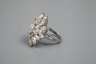 2. Hälfte 20. Jh., Weißgold geprüft 585/1000, ca. 27 mm hoher Ringkopf, vollflächig besetzt mit Diamantnavetten und Brillanten von bis zu ca. 0,5 ct, von zusammen ca. 4 ct in guter Qualität und verschiedener Farbnuancen, RW 16 mm, G ca. 8,3 g.