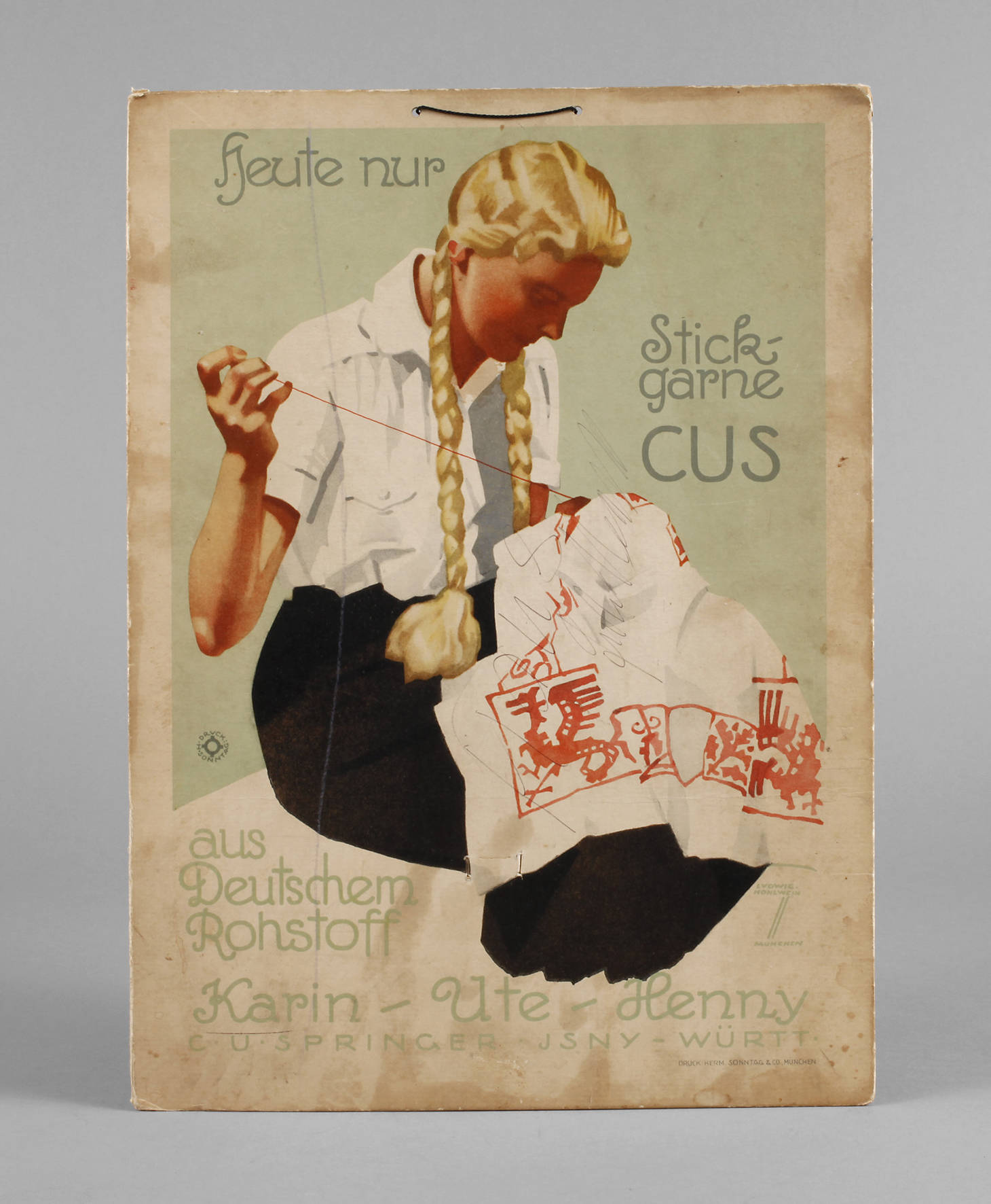 um 1930, signiert Ludwig Hohlwein München, Herstellervermerk Druck Herm. Sonntag & Co. München, für die Firma C. U. Springer, Papier mehrfarbig lithografiert, auf Karton aufgezogen, stärkere Erhaltungsmängel, Maße 40 x 29 cm.