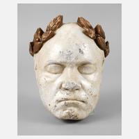 1930er Jahre, unsigniert, Keramik weißlich glasiert und goldbronziert, das Haupt mit Lorbeerlaub geschmückt, Wandaufhängung, diese erneuert, stärkere Altersspuren, H 24 cm.