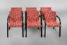 2. Hälfte 20. Jh., bequeme Polsterstühle mit Armlehnen, aus gebogenem Buchenholz schwarz lackiert, Sitzflächen aus Schichtholz, Verbindungsstreben aus verchromten Stahlrohr gesteckt und verschraubt, guter Originalzustand mit geringen Gebrauchsspuren, H 78 cm, SH 49 cm.