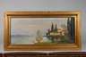 sommerliche Ansicht von Cannero Riviera am Ufer des Lago Maggiore, pastose Malerei in Spachteltechnik, Öl auf Leinwand, um 1950, links unten signiert ”A. Schuhknecht”, rückseitig auf der Leinwand betitelt ”Am Lago maggiore”, etwas reinigungsbedürftig, gerahmt, Falzmaß ca. 34,5 x 82 cm. Künstlerinfo: eigentlich Adolf Gustav Schuhknecht, dt. Maler (1889 Reichenbach im Vogtland bis 1963 Rotenburg an der Wümme), zunächst Lehre zum Elektromonteur, als Maler weitestgehend Autodidakt, belegte Kurse in Malerei, unternahm zahlreiche Studienreisen nach Griechenland, Italien, Skandinavien (Norwegen), Ägypten und Südamerika, tätig in Leipzig-Böhlitz-Ehrenberg, 1944 Übersiedlung nach Rotenburg an der Wümme, Mitglied im Leipziger Künstler-Verein, Quelle: Dressler und polnische Wikipedia.