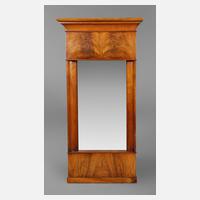 Nussbaummaser auf Nadelholz furniert, um 1820, mit breiten gekehlten Lisenen, Spiegelglas erneuert, H 110 x B 60 cm.