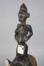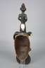 Elfenbeinküste/Mali, bemaltes Limbaholz, Gesichtstatauierungen, mit einer stehenden Frau als Kopfaufsatz, Gebrauchsspuren, aber nicht getragen, H 68 cm.