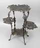 Eisenguss, um 1890, gemarkt Kunstgießerei Mägdesprung, drei Etagen, reich mit Rokokomotiven verziert, die mittigen Platten mit römischen Architekturszenen, guter Zustand, H 74 x B 85 x T 30 cm.