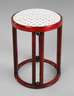 Entwurf um 1905, Zarge mit Brandstempel und Resten eines Klebeetiketts ”J & J Kohn Austria”, Buchenbugholz, rotbraun gebeizt, runder Hocker, mit acht runden Säulen und acht geschwärzten Kugeln verziert, restauriert, Bezug erneuert, H 46, D 36 cm.