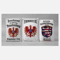 Anfang 20. Jh., eins gemarkt Ursus-Email Emaillierwerk Gottfried Dichanz Berlin bzw. Brandenburger Email GmbH Angermünde, gebauchte Türschilder, mehrfarbig emailliert, alle mit originalen Bohrungen, Z 0–1, Maße max. 24 x 16 cm.
