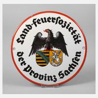 um 1900, Hersteller C.R. Dold, Offenburg - B., rückseitig mit originalem Herstellerhinweis zur Montage, mehrfarbig emailliertes, leicht gebauchtes Rundschild für die Land-Feuersozietät der Provinz Sachsen, zwei originale Bohrungen, winz. Emailfehlstelle, Z 1, D 18 cm.