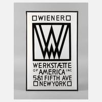 Entwurf um 1905, nzl. Ausführung, Herstellervermerk Email Hoelzl Wien XX, hochrechteckiges, gebauchtes Schild, zweifarbig emailliert, bezeichnet Wiener Werkstaette of America INC 581 Fifth Ave New York, Maße 60 x 40 cm.