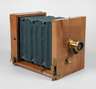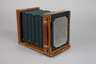 um 1890, ungemarkt, Modellnummer 14770, Mahagonigehäuse mit Messingmontierungen, Reisekamera, Objektiv mit 3-fach verstellbarer Blende, gute Erhaltung, Funktion nicht geprüft, Plattengröße 12 x 9 cm.