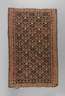 1. Hälfte 20. Jh., üppig durchmustertes Innenfeld, mehrteilige schmale Bordüren, Schmalseiten mit leichten Randbeschädigungen, Maße 197 x 127 cm.