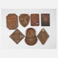 Mitte 20. Jh., Metallguss, Messing und Aluminium, teils emailliert, anlässlich von Flugveranstaltungen in Deutschland, Österreich und Schweiz, 17 Stück, unterschiedliche Maße und Erhaltungen, L max. 10,5 cm.