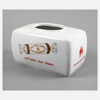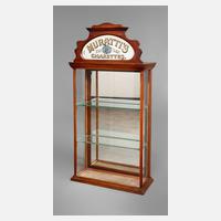 um 1910, mit Firmenschriftzug Moratti's Cigarettes, rückseitig Herstelleretikett O.C. Hawkes Birmingham, Nussbaumgehäuse dreiseitig verglast, die Rückwand zum Öffnen, mit eingelassenem Spiegelglas, zwei Fachböden, geschwungener, verspiegelter Aufsatz, nicht ganz komplett, gute Erhaltung, mit leichten Altersspuren, Maße 90 x 47 x 21 cm.