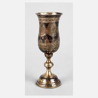 Moskau 1882, Silberstempel 84 Zolotniki, Standmarke Georg der Drachentöter, unbekannte kyrillische Meistermarke ESI, Silber vergoldet, fein graviert und in Niellotechnik geschwärzt, umlaufende Ornamentbänder und Kartuschen mit Blüten, am Stand eine kleine Reparaturstelle, sonst altersgemäßer Zustand mit Gebrauchsspuren, H 14,5 cm, G ca. 96 g.