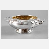 Beschaumarke 1864, Meistermarke Mathias Skytt (Skytinen), Stadtmarke St. Petersburg, Beschaumeister Edward Brandenburg, innen vergoldete, gerippte Schale, mit halbmondförmigen Verzierungen und seitlichen Handhaben, Gravur 16.10.51, guter altersgemäßer Zustand, D mit Handhaben 18,5 cm, G ca. 336 g.