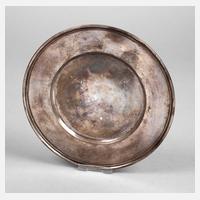 1920, Kokoschnikmarke, mit Silberstempel 84 Zolotniki, weitere unleserliche Punzen, Untersatz auf kurzem Stand, mit verstärktem Fahnenrand, D 17,5 cm, G ca. 212 g.