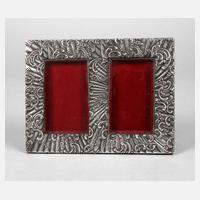 um 1880, Silberstempel 84 Zolotniki, Meisterpunze AT, wohl Alexander Treder, Meister 1884–1905 in Tallinn, verziert mit Rocaillen und kleinen Blüten, facettierte Glaseinsätze, der Rücken mit rotem Leder bezogen, Klappständer und Wandaufhängung, IM je 9 x 5 cm.