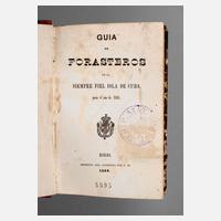 de la siempre fiel isla de Cuba para el ano 1868, Format Kl. 8°, 320 S., 64 S. Estado militar de la isola de Cuba, 32 S. Appendice, Halbledereinband der Zeit, marmorierter Schmuckvorsatz, altersentsprechend guter gebrauchter Zustand.