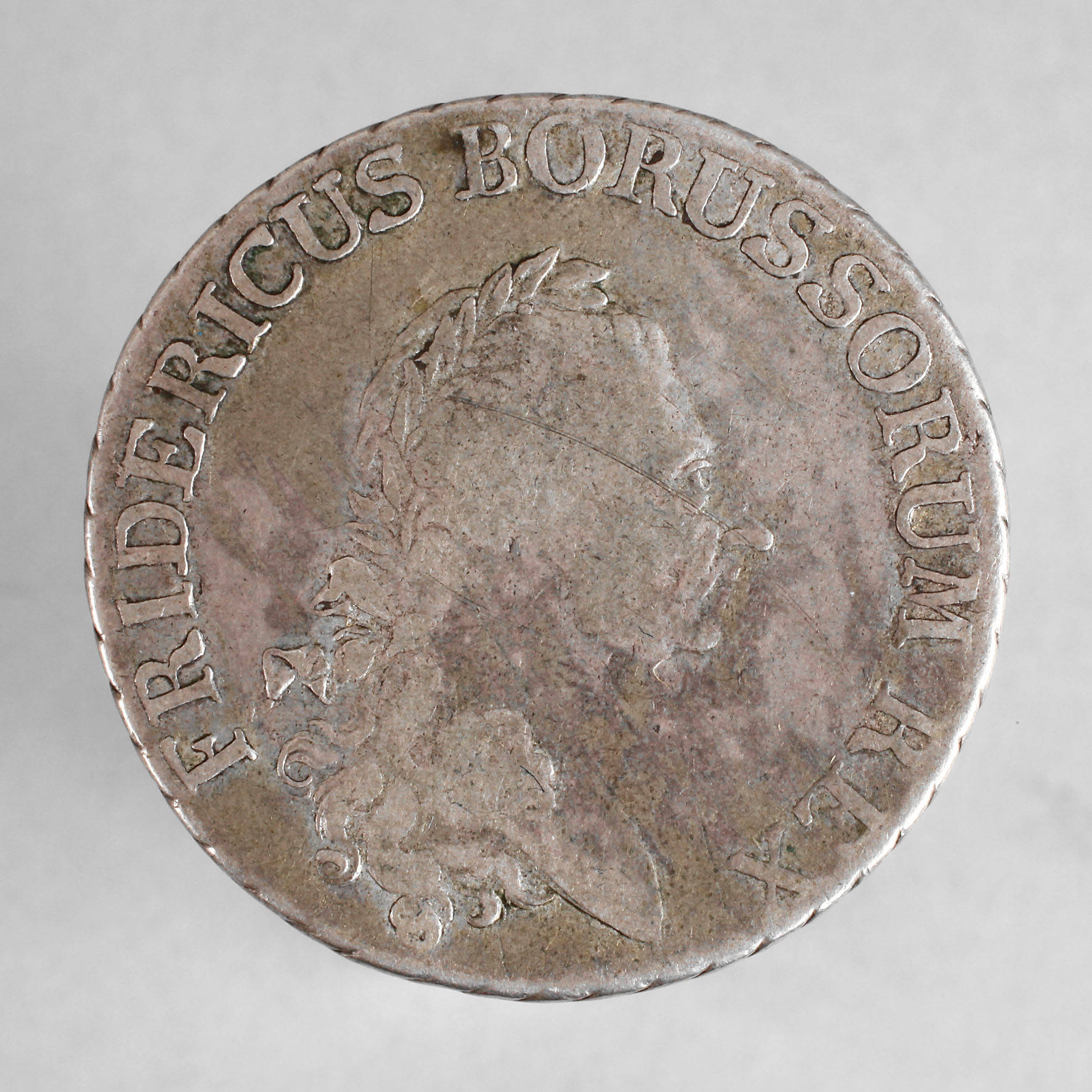 Mzst. A, Bildseite) drapierte Büste Friedrich II. von Preußen nach rechts, Wertseite) Adler über Kriegsgerät, Laubrand, Silber, s, G ca. 21,7 g.