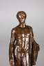 um 1930, unsigniert, Bronze grünlich patiniert, abstrahierende Darstellung eines nackten jungen Mannes nach unbekanntem römischen Vorbild, auf gekehltem und ornamental verziertem Sockel, gute Erhaltung, H gesamt 23,5 cm.