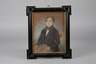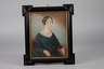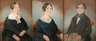Bildnispendants zweier sitzender Frauen und eines sitzenden Mannes in biedermeierlicher Robe, Mischtechniken (Pastell, Gouache und Aquarell über Bleistiftvorzeichnung), um 1850, unsigniert, rückseitig sekundäre Annotationen zu den Dargestellten, Altersspuren, je als Pendants hinter Glas im Rahmen mit ausgestellten Ecken gerahmt, Falzmaße je ca. 27 x 22 cm.