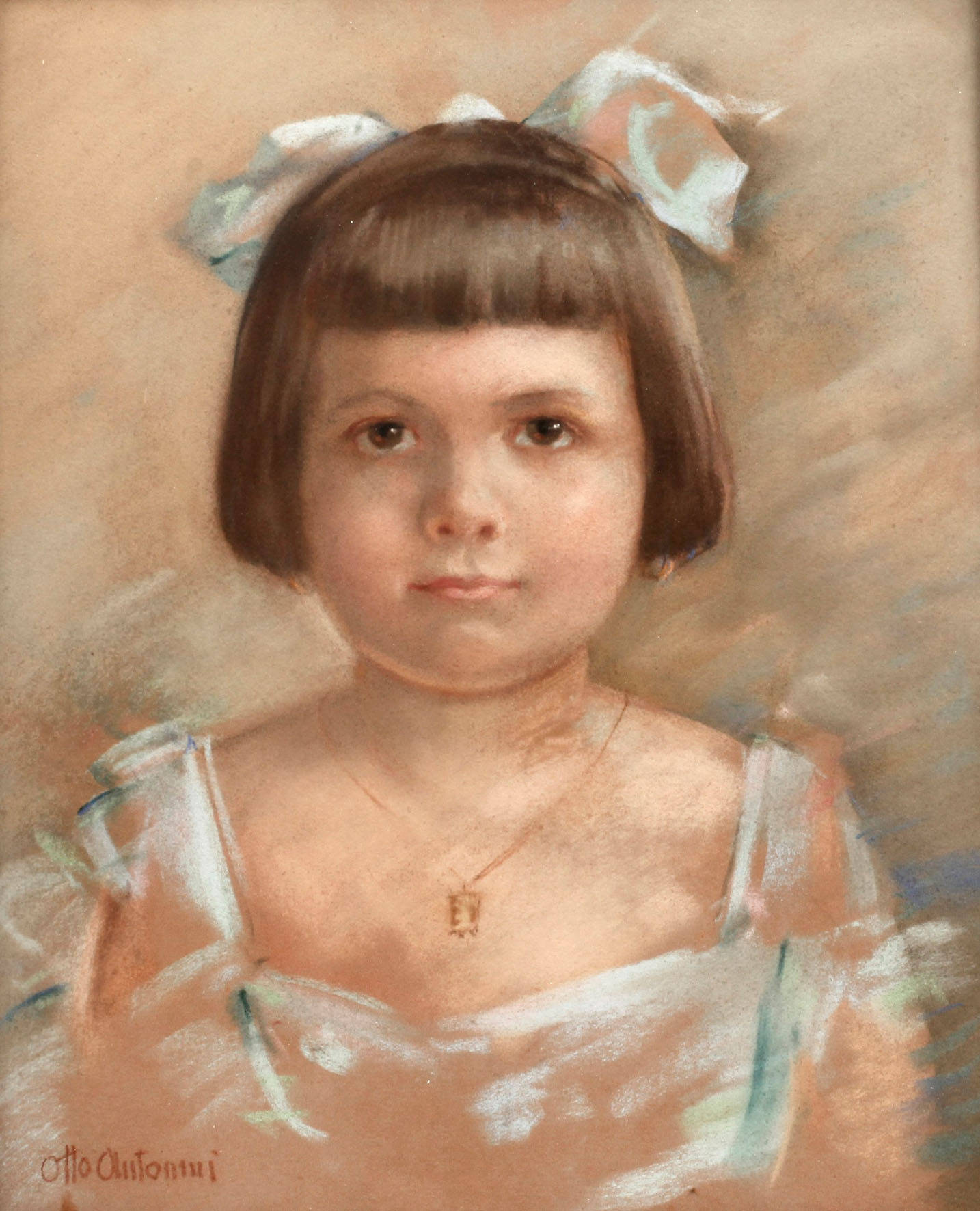 freundlich dem Betrachter entgegen schauendes junges Mädchen mit großer Schleife im Haar, Pastell auf getöntem Papier, um 1910, links unten signiert Otto Antonini, leichte Erhaltungsmängel, hinter Glas gerahmt, Falzmaß ca. 49,5 x 41 cm.