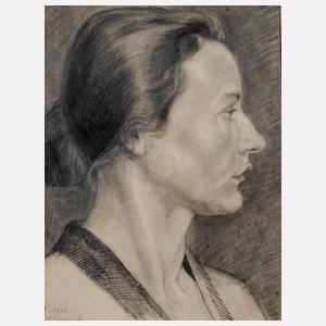Seitenbildnis einer jungen Frau mit hochgestecktem Haar, vor monochromem Grund, fein nuancierte Portraitzeichnung, Grafit auf Papier, links unten datiert und signiert 1923 A. Bergmann, leichte Erhaltungsmängel, unter Passepartout und hinter Glas gerahmt, Passepartoutausschnitt ca. 28 x 21 cm. Künstlerinfo: eigentlich Alois Bergmann, auch Aloys Bergmann, dt. Maler und Zeichner (1897 Glattbach bis 1965 Glattbach), 1913-16 Lehre in der Buntpapierfabrik Aschaffenburg, Besuch der Kunstgewerbeschule in Mainz, 1921-27 Studium an der Akademie der Bildenden Künste in München, 1924 Staatspreis der Akademie und Meisterschüler von Carl Johann Becker-Grundahl, Max Doerner und Franz Klemmer, ab 1931 ergänzte er seinen Namen mit dem Zusatz Franken”, ab den 1930er Jahren künstlerische Ausstattung zahlreicher Kirchen im fränkischem Raum, Quelle: Wikipedia, Matrikel der Münchner Akademie und Internet.