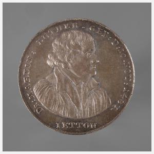 Avers) Brustbildnis Luther nach rechts, Revers) Schrift ”Das Dritte Jubel Jahr Nach Der Wieder Herstellung Des Reinen Evangeliums D. 31. Oct. 1817”, geriffelter Rand, Silber, vz, Henkelspur, D ca. 32 mm, G ca. 15,4 g.