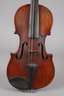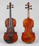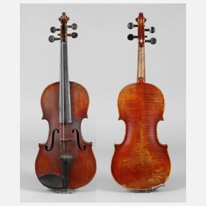 innen mit Klebezettel Musikinstrumenten-Manufaktur Aug. Clemens Glier Markneukirchen ... 1920, geteilter, gleichmäßig geflammter Boden in cognacfarbenem Lack, dreiteilige umlaufende Randeinlagen, rissfreie Decke, Alters- und Gebrauchsspuren, in Kasten, L Korpus 35,7 cm.