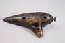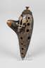 19. Jh., grauer Scherben geschwärzt, Messingmontierungen, stärkere Alters- und Gebrauchsspuren, L 16,5 cm.