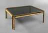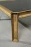 am Bein gemarkt Design Selection Ghyczy & Co., 1970er Jahre, Gestell aus Bronzeguss, U-Profile gegossen und verschraubt, die raue Gussseite sichtbar nach außen gerichtet, originale grün-grau getönte Glasplatte, guter Originalzustand, Maße 41 x 120 x 91 cm.