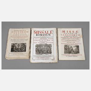 aus religiösen Schriften des 17. und 18. Jh. herausgetrennt, aus Missae propriae festorum ordinis fraturum minorum (Kempten 1679), Missae propriae sanctorum ad usu fraturum minorum (Venedig 1747), Missale romanum (Kempten 1774), normale Altersspuren.