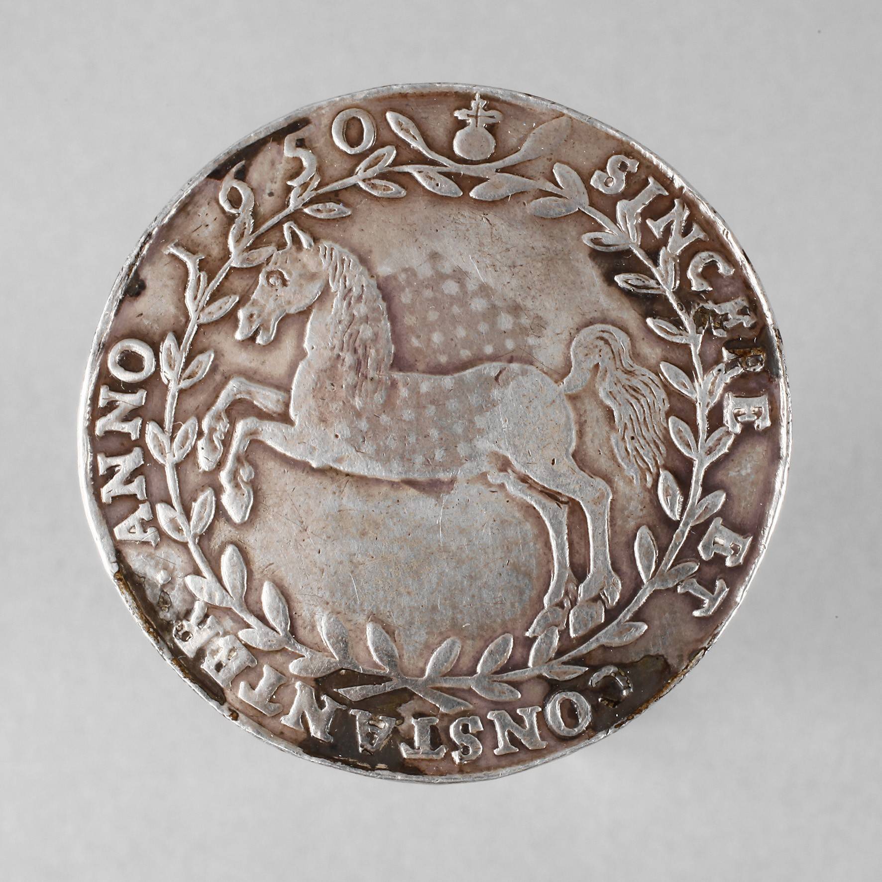 Christian Ludwig, regierend von 1648 bis 1665, Avers) springendes Ross nach links im Kranz, Umschrift ”SINCERE ET CONSTANTER”, Revers) 12-teiliger Wappenschild, von fünf Ritterhelmen geziert, Zeichen LW mit gekreuzten Zainhaken des Clausthaler Münzmeisters Lippold Weber, Silber, ss geputzt, Rückstände eines Aufklebers aversseitig, D ca. 43 mm, G ca. 27,95 g.
