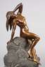 um 1890, auf dem Steinsockel signiert, Bronze hell patiniert, Darstellung einer nackten, an einen Felsen geketteten Schönheit mit offenem Haar, auf handbehauenem Steinsockel, winzige Altersspuren, sonst gut erhalten, H gesamt ca. 35,5 cm.