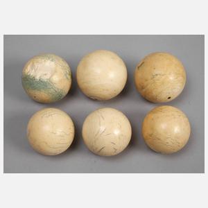 Sechs Billardkugeln Elfenbein