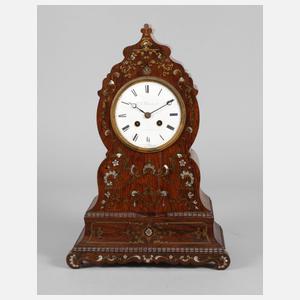 Frankreich, 1. Hälfte 19. Jh., auf dem Werk gemarkt A. Cruet et Lundquist Paris, Ziffernblatt mit Verkäufersignatur F. G. Dehnhard Hannover, feines in Palisander furniertes Gehäuse mit ornamentalen Einlegearbeiten aus graviertem Messing und Perlmutt, Werk mit Halbstundenschlag auf Glocke, Ziffernblatt beschädigt, Gehäuse rest.bed., Werk läuft, mit Schlüssel, H 41 cm.