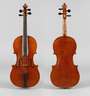 mit Zettel bezeichnet nach Joseph Guarnerius gefertigt von J. Altrichter, Hof-Instr.-Fabrik in Frankfurt a.O., anno 1906, am Boden zusätzlich brandgestempelt, geteilter, sehr gleichmäßig geflammter Boden in haselnussbraunem Lack, umlaufende, dreiteilige Randeinlage, rissfreie Decke, guter, spielbereiter Zustand mit minimalen oberflächlichen Altersspuren, L Korpus 36,5 cm.