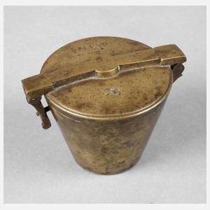 19. Jh., gemarkt, Bronze mehrteilig gegossen, zwei Einsätze fehlen, H 5 cm.