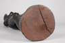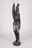 wohl Gambia, 2. Hälfte 20. Jh., Mahagoni schwarz gefasst, vollplastische Darstellung einer stehenden Frau mit ungewöhnlicher Haartracht, über den Rücken einen langen Beutel haltend, hohe, kammartige Frisur mit Zopf, Arme und Beine mit Reifen verziert, beste Erhaltung, H ca. 75 cm.