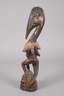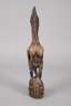 neuere Fertigung, eingefärbtes, bemaltes Weichholz, vollplastische Darstellung einer sitzenden weiblichen Figur mit Vogelkopf, Augen aus Kaurischnecken, H 50 cm.