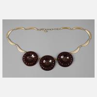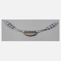 um 1930, wohl Jakob Bengel, Metall vernickelt, Mittelteil mit Metall und Galalithelementen, Federringverschluss, L ca. 45 cm.