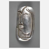 2. Hälfte 20. Jh., Silber gestempelt 835, in Form eines plastisch gearbeiteten Faunkopfs, Maße: 41 x 25 mm, G 13,3 g.