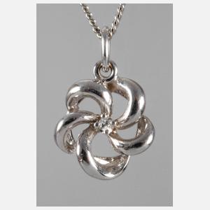 um 1980, Weißgold gestempelt 585, mittig besetzt mit kleinem Achtkantdiamant, an ca. 45 cm langer Kette aus Weißgold gestempelt 333, G gesamt ca. 4,3 g.