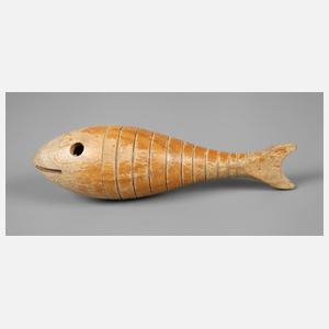Entwurf Hugo Kükelhaus 1936, mit Nachlassstempel Hans Kessler, in Fischform, Kirschholz, hohl gearbeitet, innen mit Holzkugel, Gebrauchsspuren, L 14 cm.