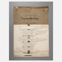 verfasst von seiner K. K. Apostol. Majestaet Ferdinand I. Kaiser von Oesterreich, Koenig von Ungarn und Boehmen, Wien 1842, 4 Blatt, Maße je ca. 48,5 x 66 cm, mittig gefaltet, am Rand Klebestreifen, Altersspuren.