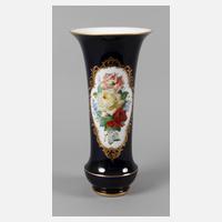 blaue Schwertermarke Pfeifferzeit 1924-1934, 1. Wahl, kobaltblauer Fond, schauseitig eine große goldgerahmte Kartusche mit feiner polychromer Bemalung, Goldränder, geringe Gebrauchs- und Altersspuren, H 40 cm.