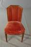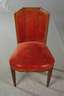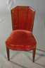 Frankreich um 1930, Nussbaum massiv und furniert, die Vorderseite der Zarge in Wurzelholz furniert, Front mit sechsfach facettierten, spitzzulaufenden Füßen, die Hinterbeine schräg ausgestellt, Samtbezug erneuert, H 88 cm, SH 47 cm.