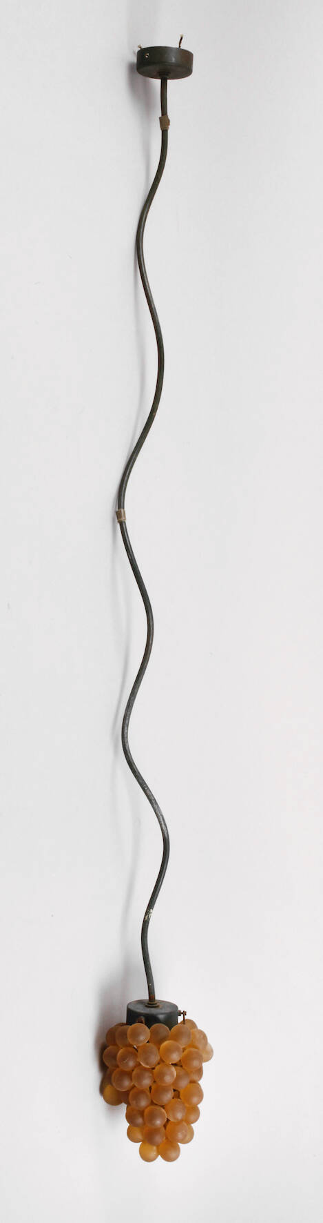 wohl Frankreich Anfang 20. Jh., Metallguss grün gefasst, spiralförmig gedrehter Ausleger mit schlichter, abgehängter Fassung, Altersspuren, H 120 cm.